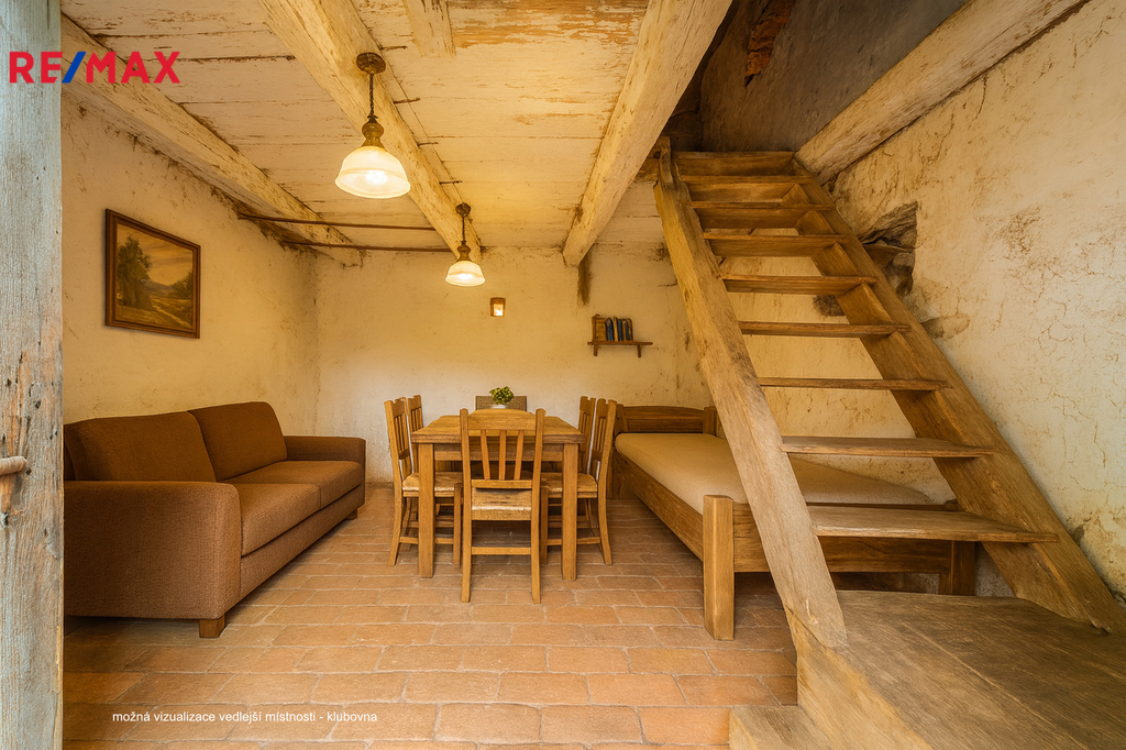 Vedlejší stavbu (vemínek) o dvou nadzemních podlažích a půdou o zastavěné ploše 50 m2 lze v případě potřeby vícegeneračního bydlení rekonstruovat, a rozšířit tím dům o další bytovou jednotku se samostatným vchodem. Případně dál využívat pro dílnu, sklad, zázemí firmy, nebo ateliér.